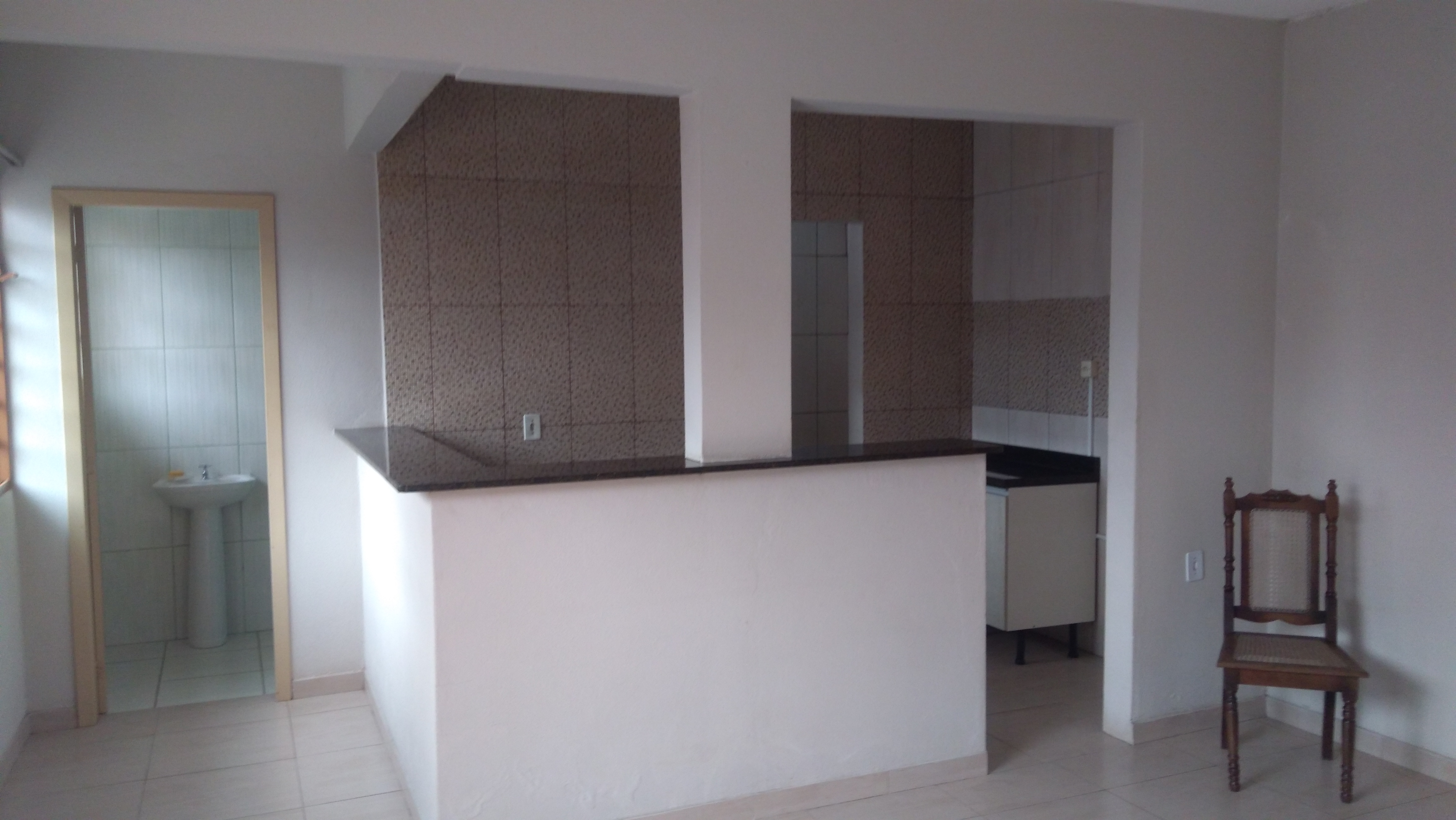 Um dormitório, sala grande,, cozinha, passa prato, banheiro, área de serviços, casa nova nova.