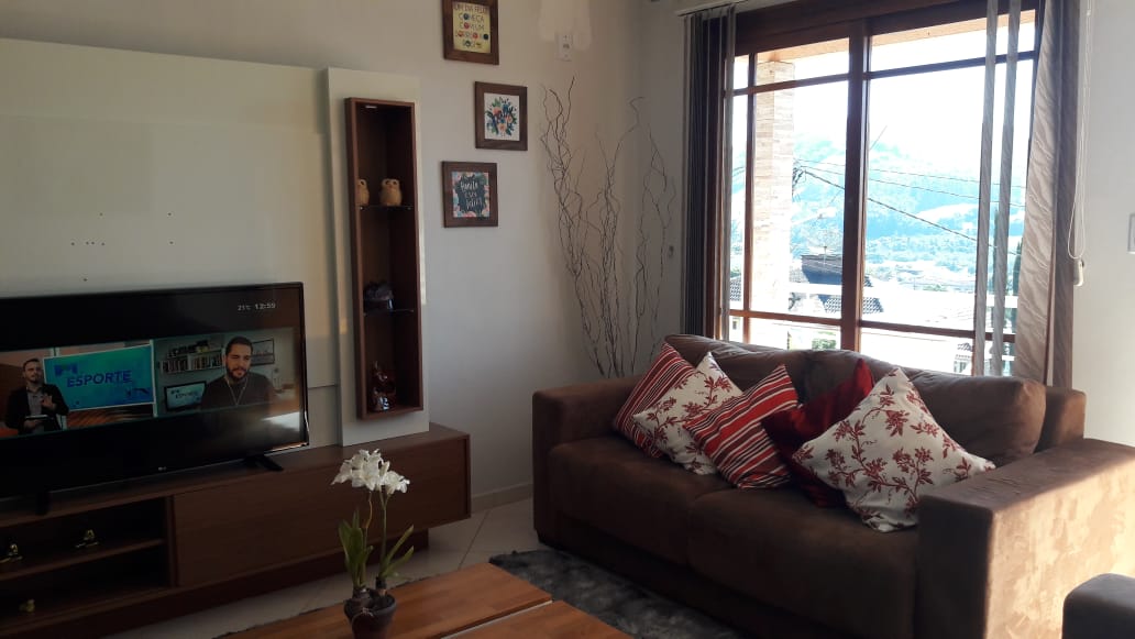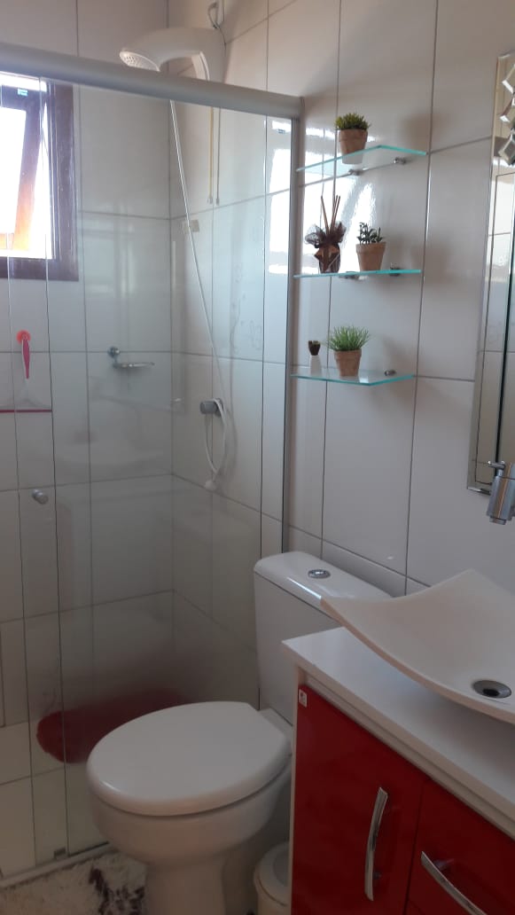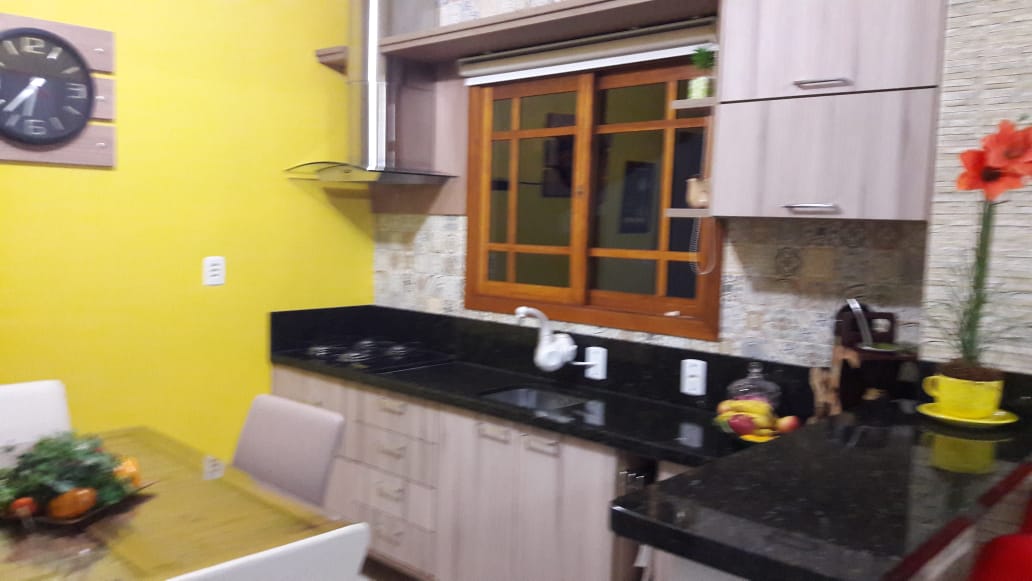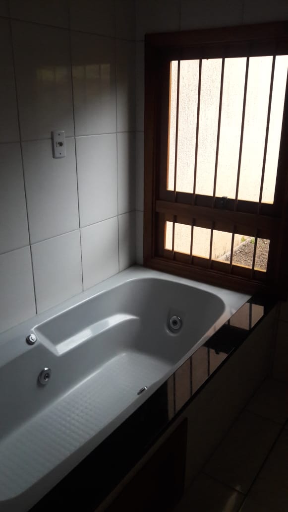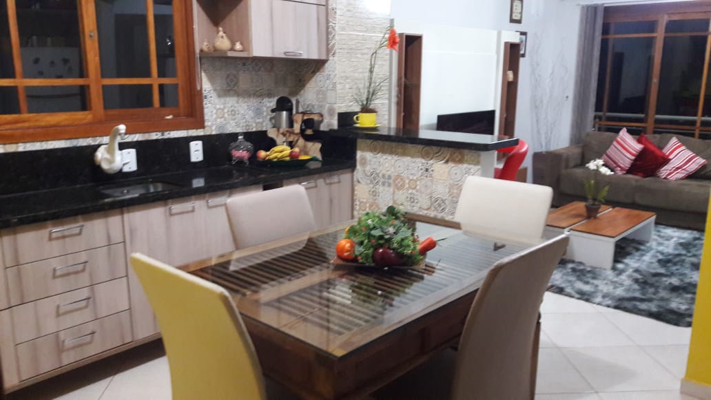 Casa com 122 m² Piso inferior com sala e cozinha integradas, 1 banheiro com banheira , 2 dormitórios sendo um com suíte .