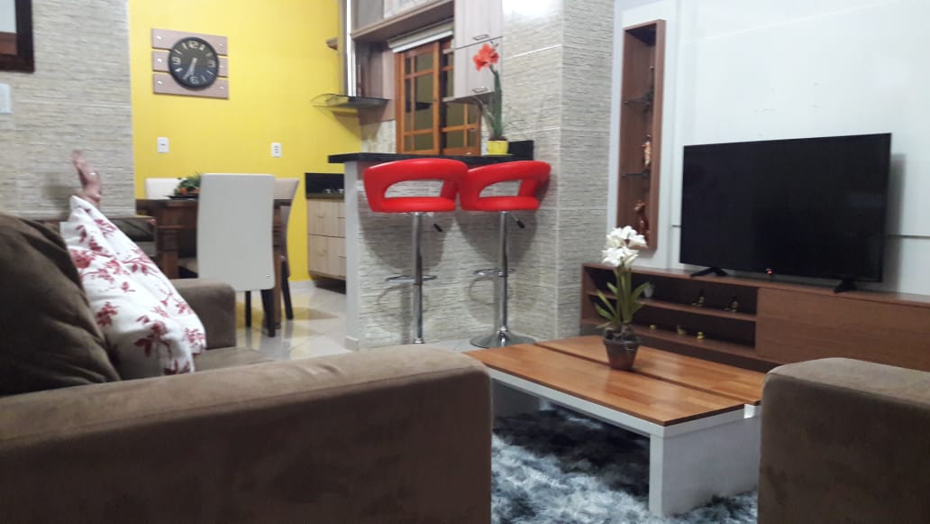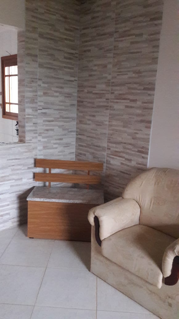 Piso superior com sala e cozinha integradas, 1 banheiro,2 dormitórios , área de serviço.