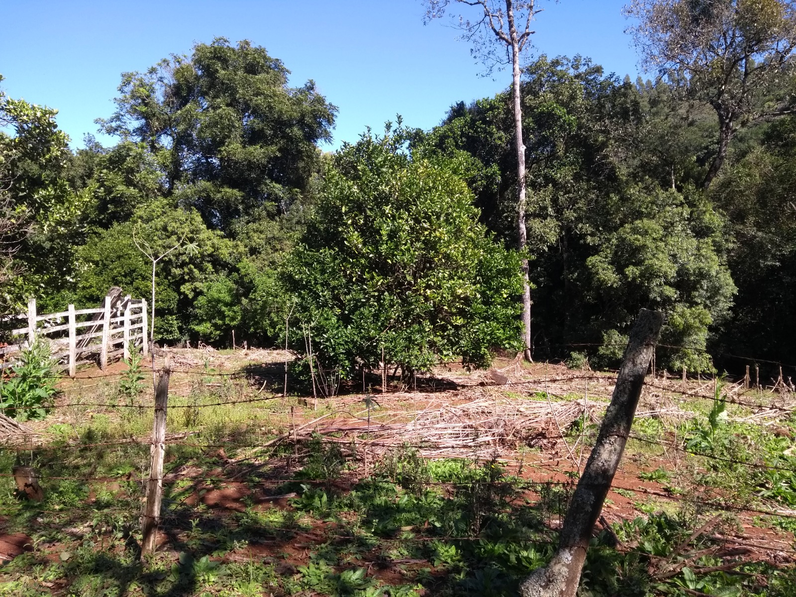Parte da área e utilizada para plantar milho, aipim, feijao e verduras ..