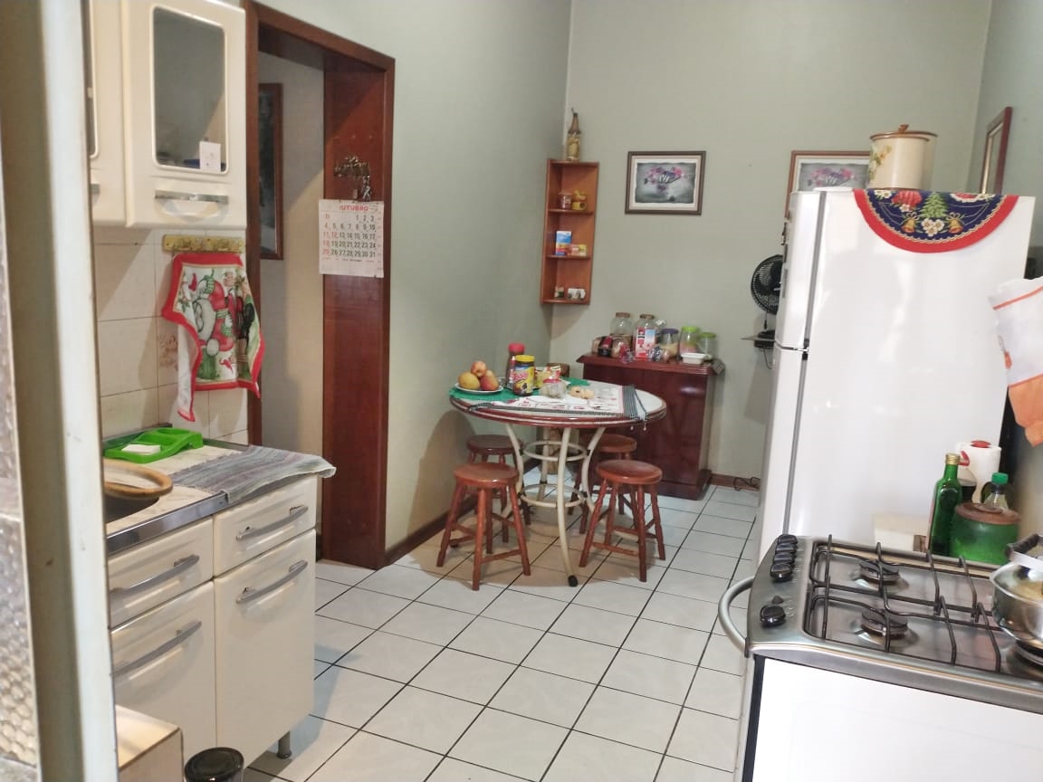 3 quartos (1 suíte), cozinha grande, sala de estar grande, banheiro social e área de serviço.